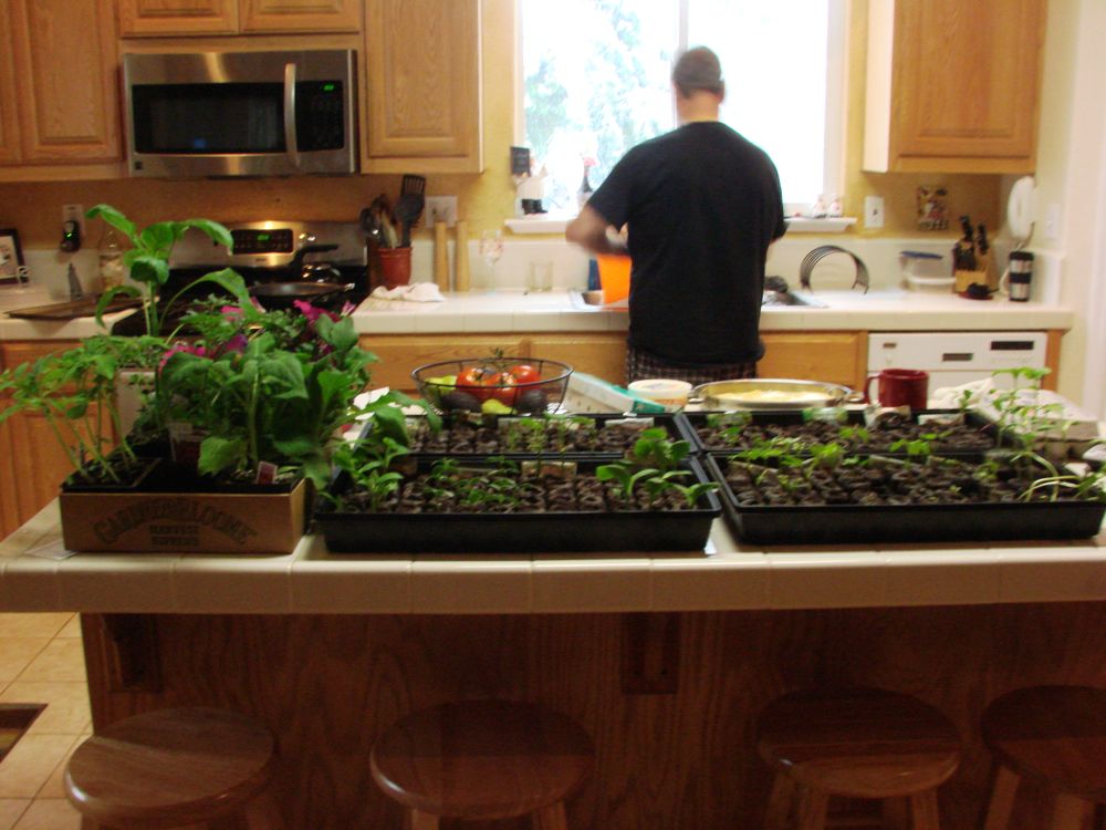 I woke up to this. We new it was going to snow so we put all our seedlings in the house. That's Joe doing the dishes. The back yard we put our our summer chairs, fountain and fire pit. Thinking it would not snow again. The garden is waiting for all it's seedlings. Have a great day.